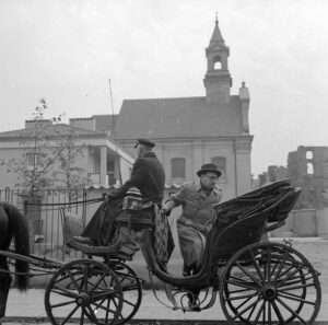 Stefan Wiechecki podczas przejażdżki dorożką po Nowym Mieście (ot. NAC/Siemaszko Zbyszko)