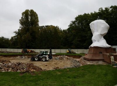 Jak zapowiedziano Pomnik na czas Konkursu odsłonięto, jednak płot zostawiono.